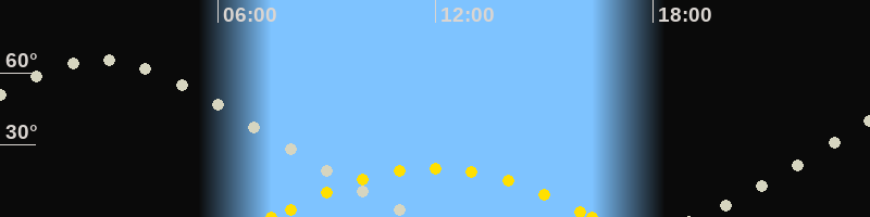 | Höchster Sonnenstand (Kulmination) | 11:55 Uhr (h = 20.4°) |