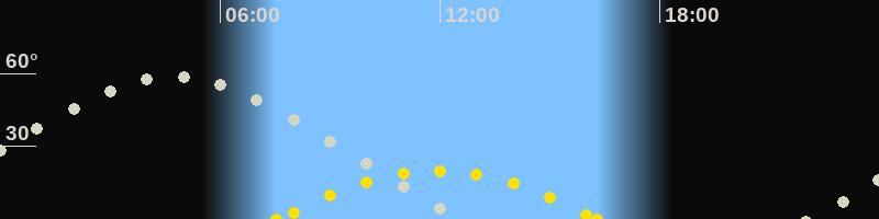 | Höchster Sonnenstand (Kulmination) | 11:55 Uhr (h = 19.9°) |