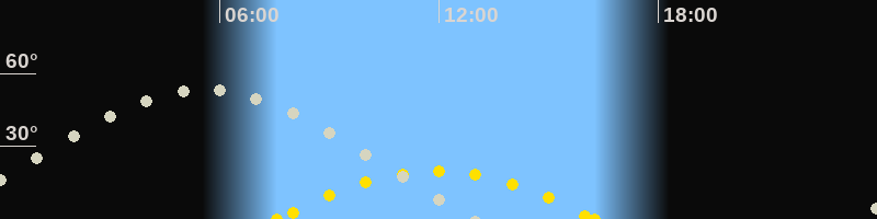 Höchster Sonnenstand (Kulmination)11:55 Uhr (h = 19.7°)