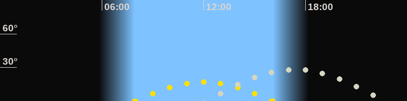 | Höchster Sonnenstand (Kulmination) | 12:00 Uhr (h = 16.9°) |
