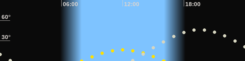 | Höchster Sonnenstand (Kulmination) | 12:01 Uhr (h = 16.6°) |