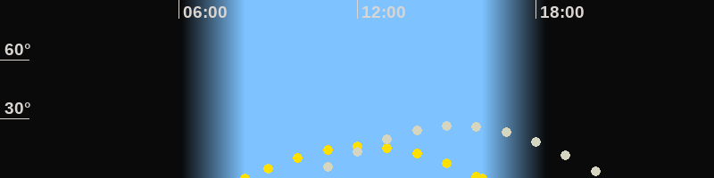 | Höchster Sonnenstand (Kulmination) | 12:13 Uhr (h = 16.2°) |