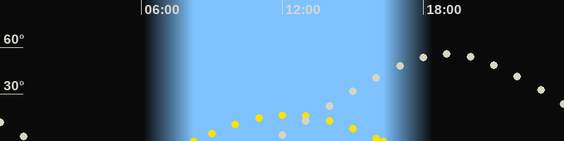 | Höchster Sonnenstand (Kulmination) | 12:15 Uhr (h = 16.7°) |