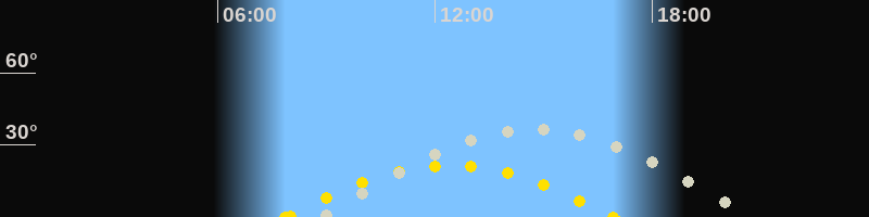 | Höchster Sonnenstand (Kulmination) | 12:23 Uhr (h = 21.5°) |