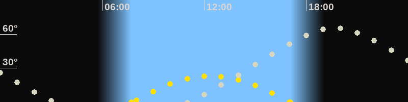 | Höchster Sonnenstand (Kulmination) | 12:24 Uhr (h = 23.2°) |