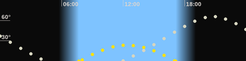 | Höchster Sonnenstand (Kulmination) | 12:24 Uhr (h = 23.5°) |