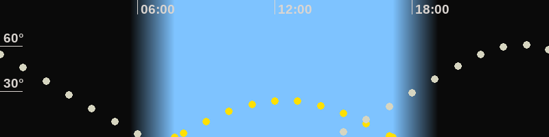 Höchster Sonnenstand (Kulmination)12:24 Uhr (h = 24.1°)