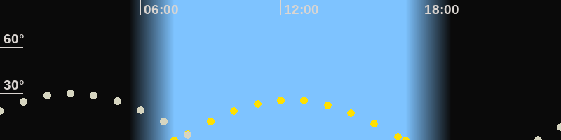 Höchster Sonnenstand (Kulmination)12:24 Uhr (h = 26.1°)