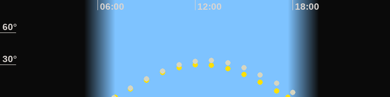 | Höchster Sonnenstand (Kulmination) | 12:23 Uhr (h = 30.3°) |
