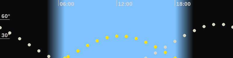 Sonnenuntergang18:01 Uhr im Westen (αAz = 263.4°)