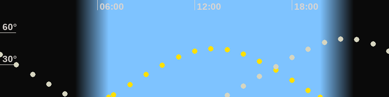 | Sonnenaufgang | 06:41 Uhr im Osten (αAz = 80.2°) |