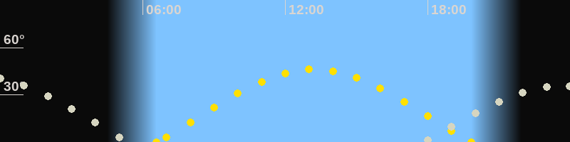 Höchster Sonnenstand (Kulmination)13:12 Uhr (h = 46.3°)