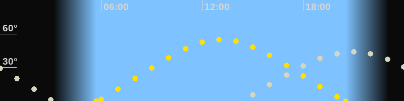 | Mondaufgang | 14:10 Uhr im Osten (αAz = 78.6°) |