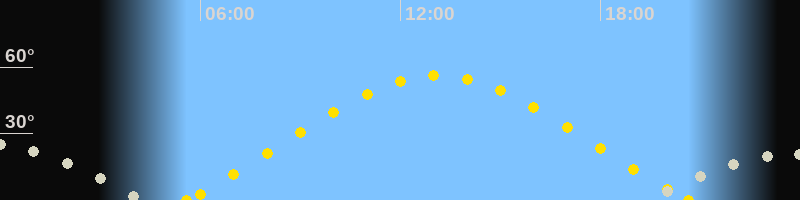 | Höchster Sonnenstand (Kulmination) | 13:06 Uhr (h = 56.2°) |