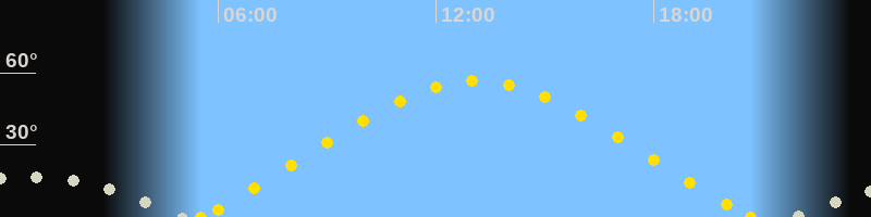 Höchster Sonnenstand (Kulmination)13:06 Uhr (h = 56.7°)