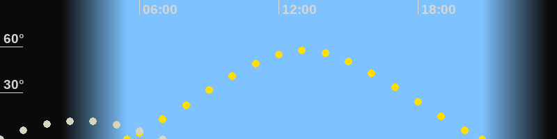 | Höchster Sonnenstand (Kulmination) | 13:06 Uhr (h = 57.5°) |