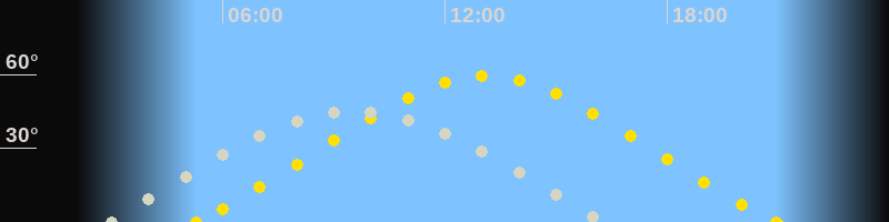 | Höchster Sonnenstand (Kulmination) | 13:06 Uhr (h = 59.3°) |