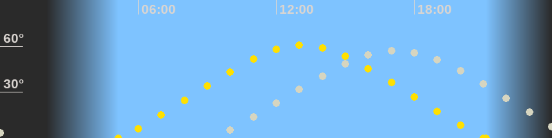 | Höchster Sonnenstand (Kulmination) | 13:07 Uhr (h = 60.8°) |