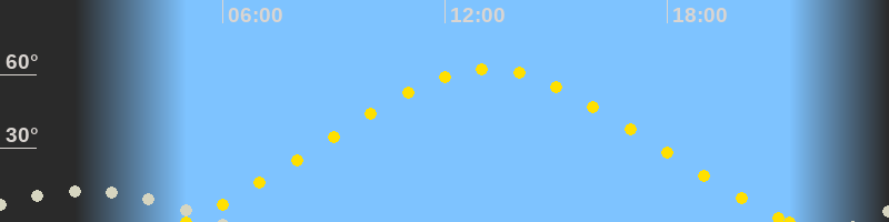 | Höchster Sonnenstand (Kulmination) | 13:09 Uhr (h = 62.2°) |
