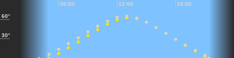| Höchster Sonnenstand (Kulmination) | 13:12 Uhr (h = 62.7°) |