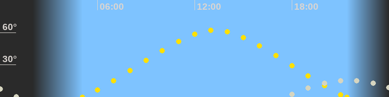 | Höchster Sonnenstand (Kulmination) | 13:14 Uhr (h = 62.3°) |