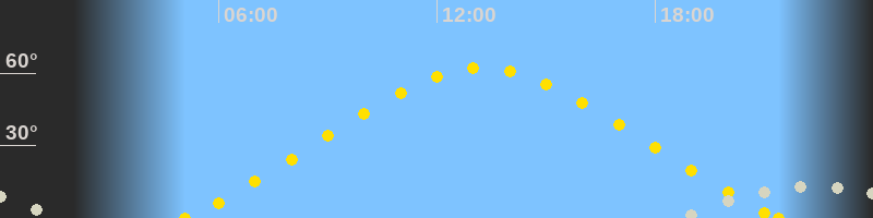 Höchster Sonnenstand (Kulmination)13:14 Uhr (h = 62.2°)