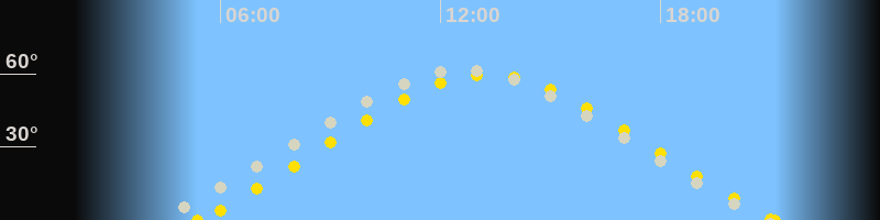 Höchster Sonnenstand (Kulmination)13:16 Uhr (h = 59.7°)
