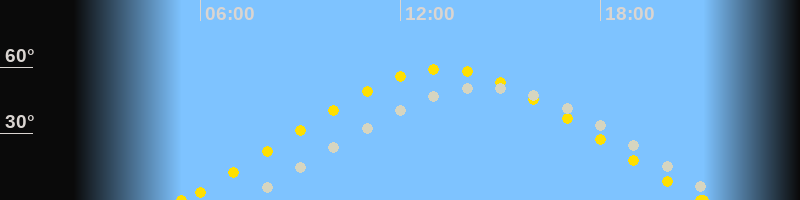 Höchster Sonnenstand (Kulmination)13:16 Uhr (h = 59.3°)