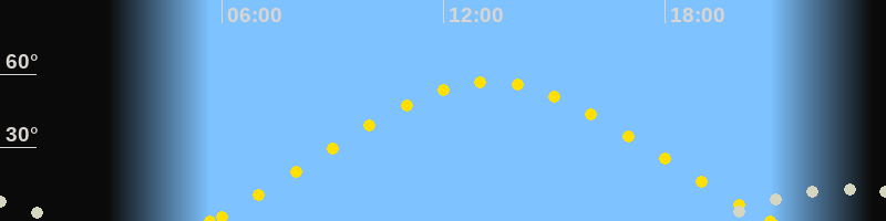 | Mondaufgang | 19:11 Uhr im Südosten (αAz = 133.8°) |