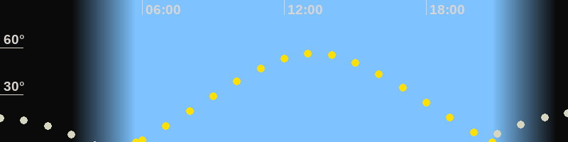 | Höchster Sonnenstand (Kulmination) | 13:16 Uhr (h = 56.4°) |