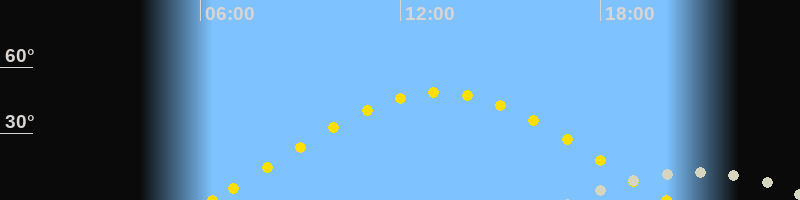 | Sonnenaufgang | 06:21 Uhr im Osten (αAz = 74.5°) |