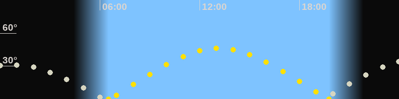 Sonnenaufgang06:30 Uhr im Osten (αAz = 78°)