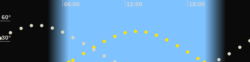 | Sonnenaufgang | 06:36 Uhr im Osten (αAz = 80.4°) |