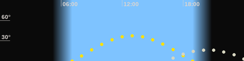 | Sonnenaufgang | 07:05 Uhr im Osten (αAz = 92°) |