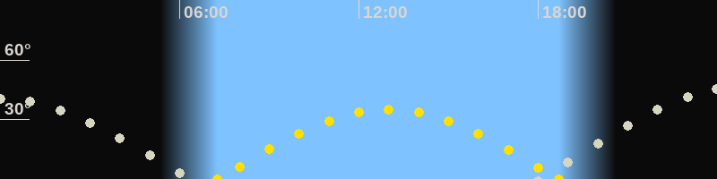 | Sonnenaufgang | 07:15 Uhr im Osten (αAz = 95.7°) |