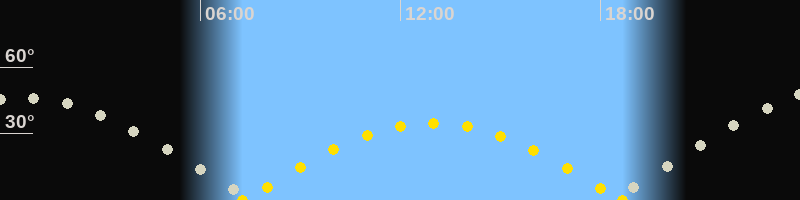 | Sonnenaufgang | 07:16 Uhr im Osten (αAz = 96.3°) |