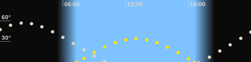 | Sonnenaufgang | 07:19 Uhr im Osten (αAz = 97.5°) |