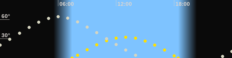 | Höchster Stand (Kulmination) | 05:59 Uhr (h=64.5°) |