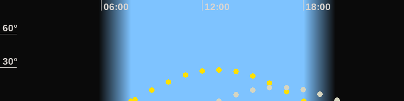 | Höchster Stand (Kulmination) | 16:29 Uhr (h=12.4°) |