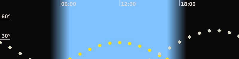 Höchster Stand (Kulmination)21:30 Uhr (h=43.4°)