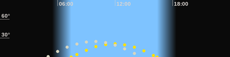 | Höchster Stand (Kulmination) | 09:50 Uhr (h=25°) |