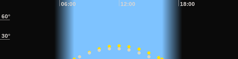 | Höchster Sonnenstand (Kulmination) | 11:55 Uhr (h = 20.4°) |