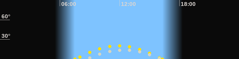| Höchster Sonnenstand (Kulmination) | 11:55 Uhr (h = 20.2°) |