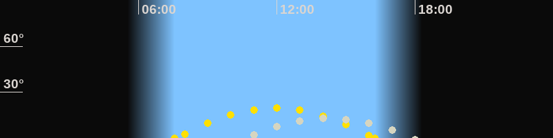 | Höchster Sonnenstand (Kulmination) | 11:55 Uhr (h = 19.7°) |