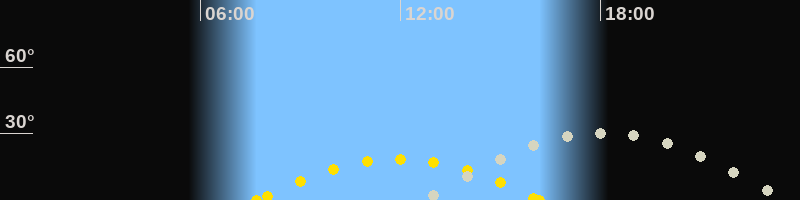 | Höchster Stand (Kulmination) | 18:00 Uhr (h=30.2°) |