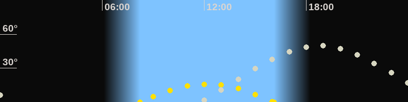 | Höchster Sonnenstand (Kulmination) | 12:10 Uhr (h = 15.9°) |