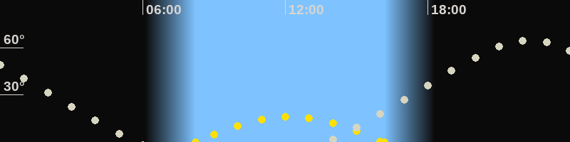 | Höchster Sonnenstand (Kulmination) | 12:12 Uhr (h = 16.1°) |