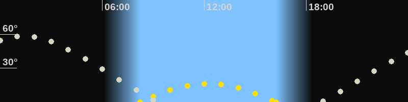 | Höchster Sonnenstand (Kulmination) | 12:14 Uhr (h = 16.4°) |