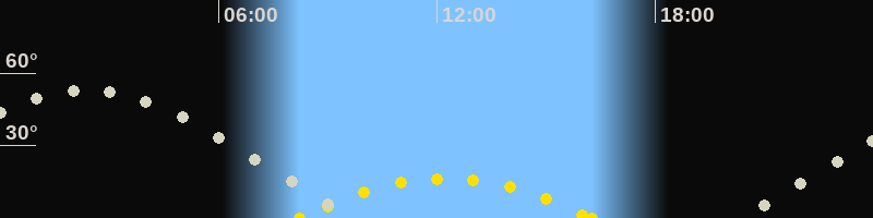 | Höchster Sonnenstand (Kulmination) | 12:14 Uhr (h = 16.5°) |