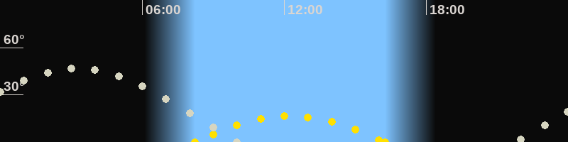 Höchster Sonnenstand (Kulmination)12:15 Uhr (h = 16.6°)